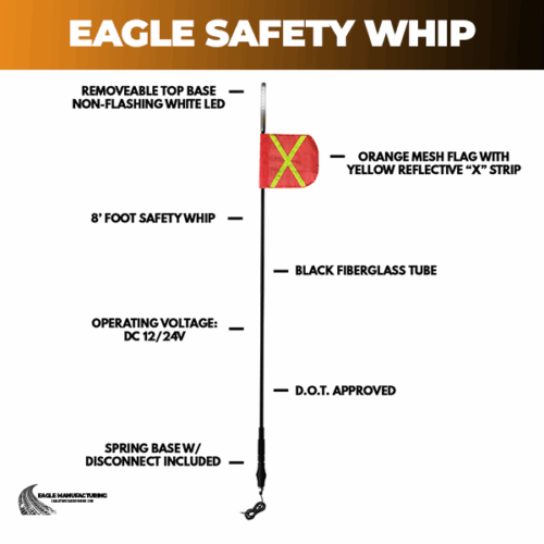 Eagle Manufacturing 8 ft Safety Whip – White Fiberglass (Quick-Disconnect / White LED)